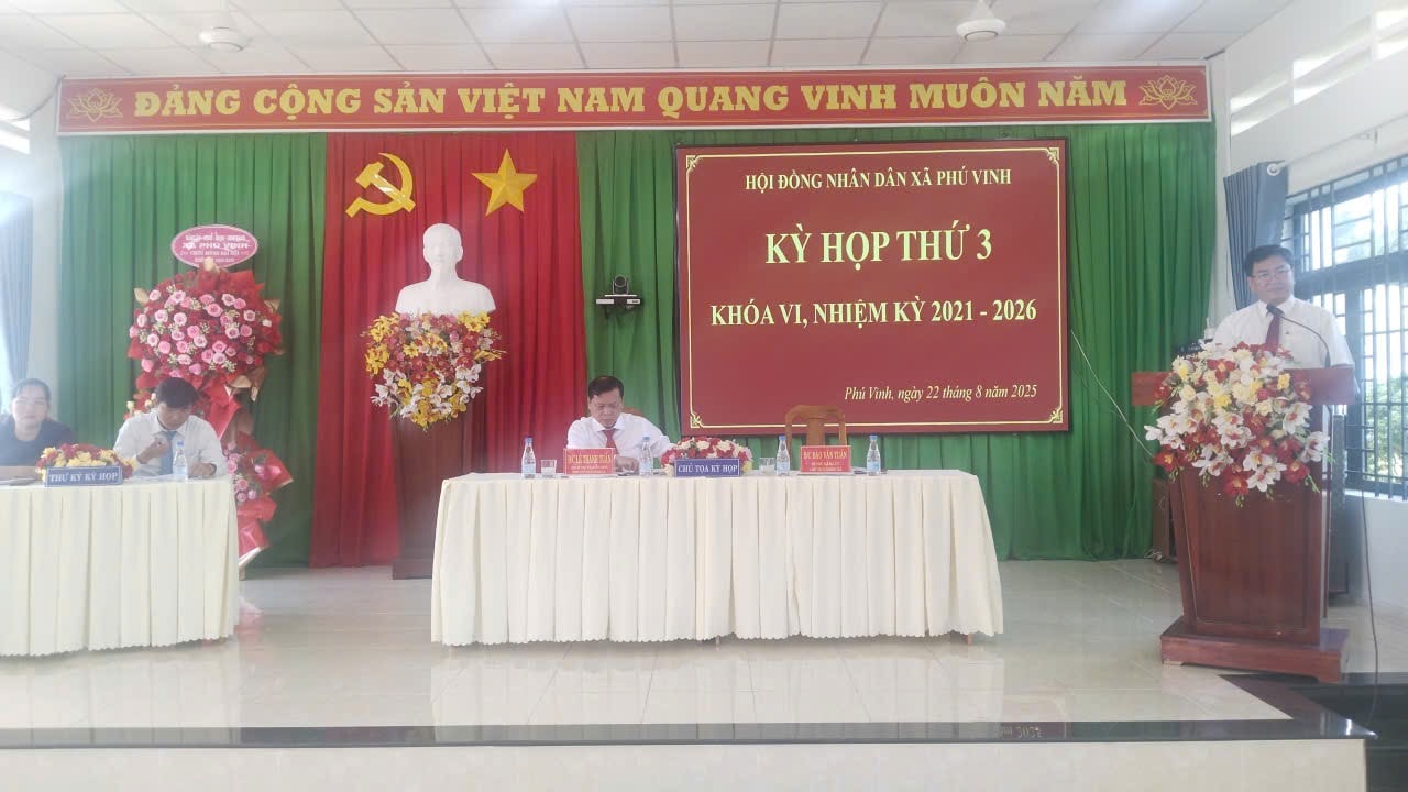 Sáng ngày 22/8/2025. HĐND xã Phú Vinh tổ chức kỳ họp thứ 3 - Kỳ họp thường lệ giữa năm HĐND xã khóa VI, nhiệm kỳ 2021 - 2026.