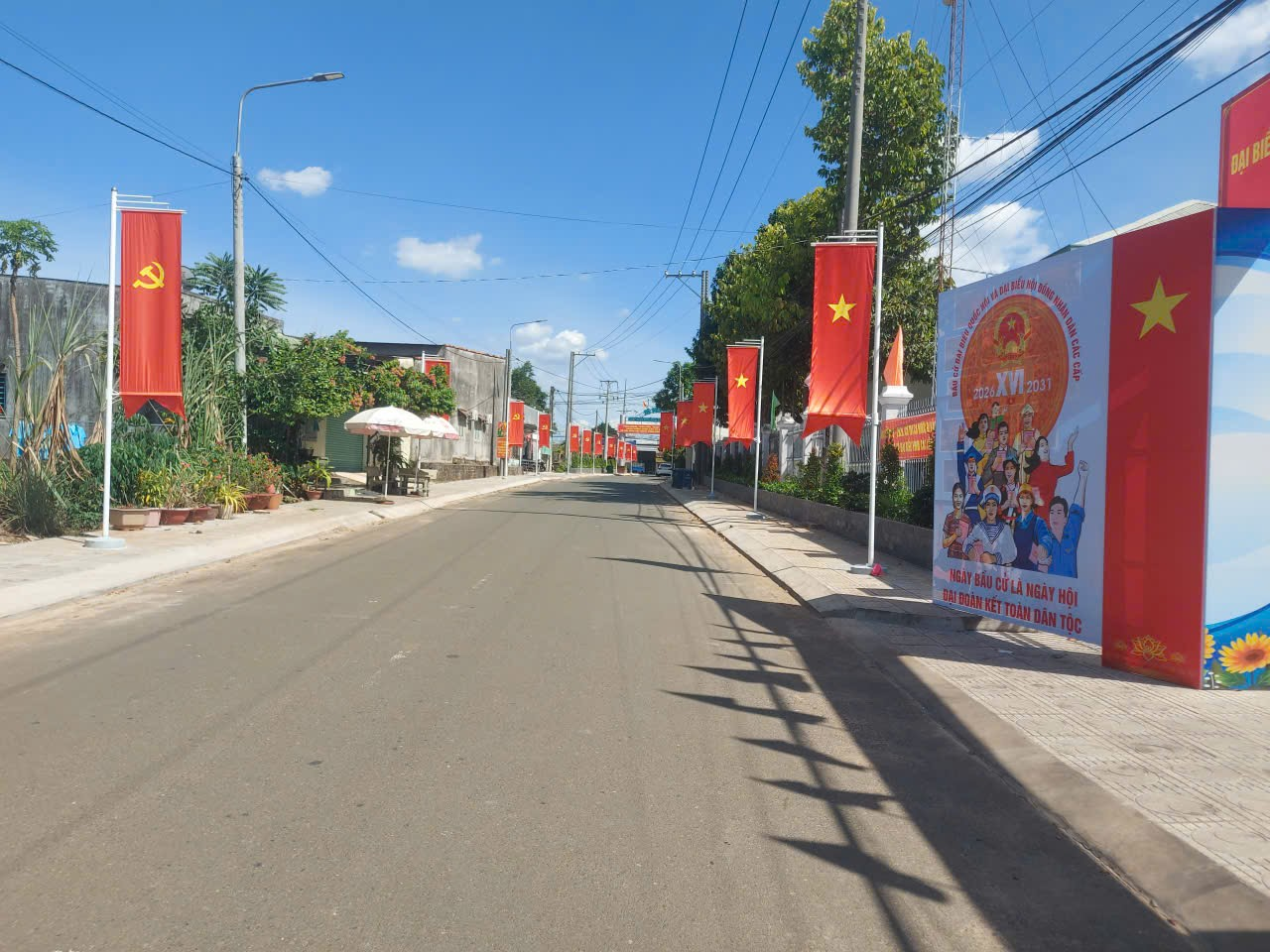 Dạo quanh các trục đường chính của xã Phú Vinh những ngày này, chúng ta dễ dàng bắt gặp sắc đỏ rực rỡ của cờ Tổ quốc, những tấm pano, áp phích tuyên truyền rực rỡ chào mừng ngày bầu cử.
