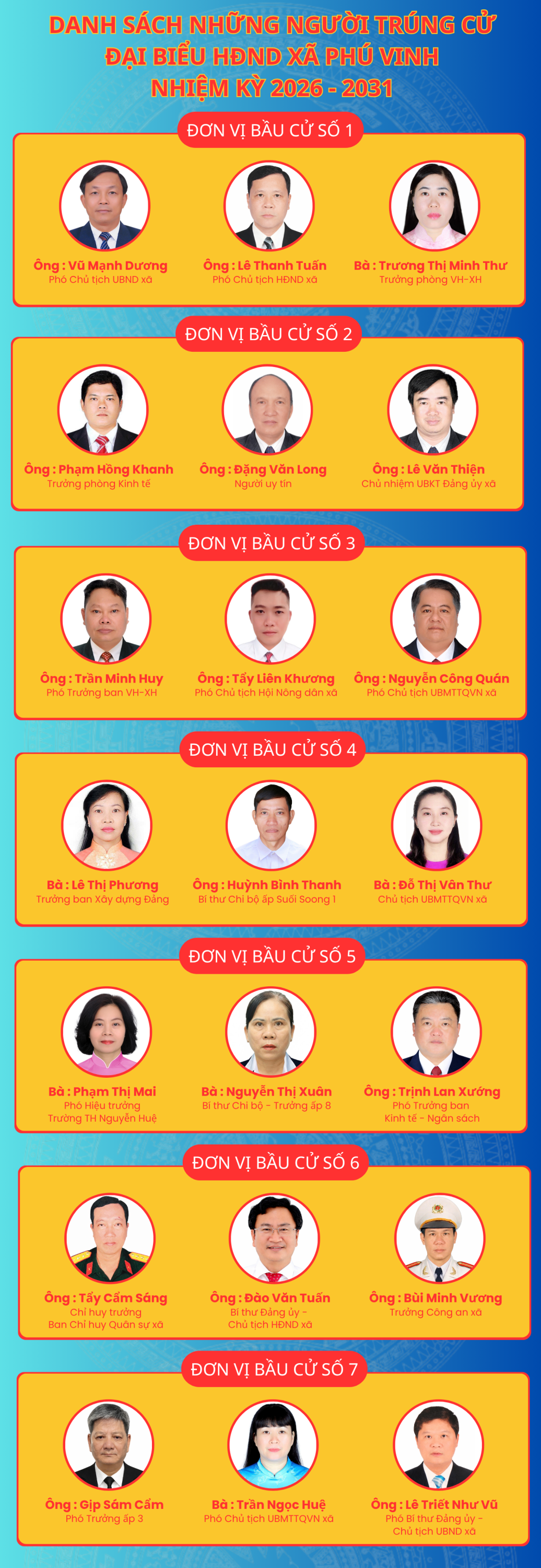 Kết quả bầu cử đã lựa chọn được những đại biểu xứng đáng vào Hội đồng nhân dân xã Phú Vinh nhiệm kỳ mới – những người sẽ tiếp tục phát huy vai trò, trách nhiệm, đồng hành cùng chính quyền và Nhân dân xây dựng quê hương ngày càng phát triển.