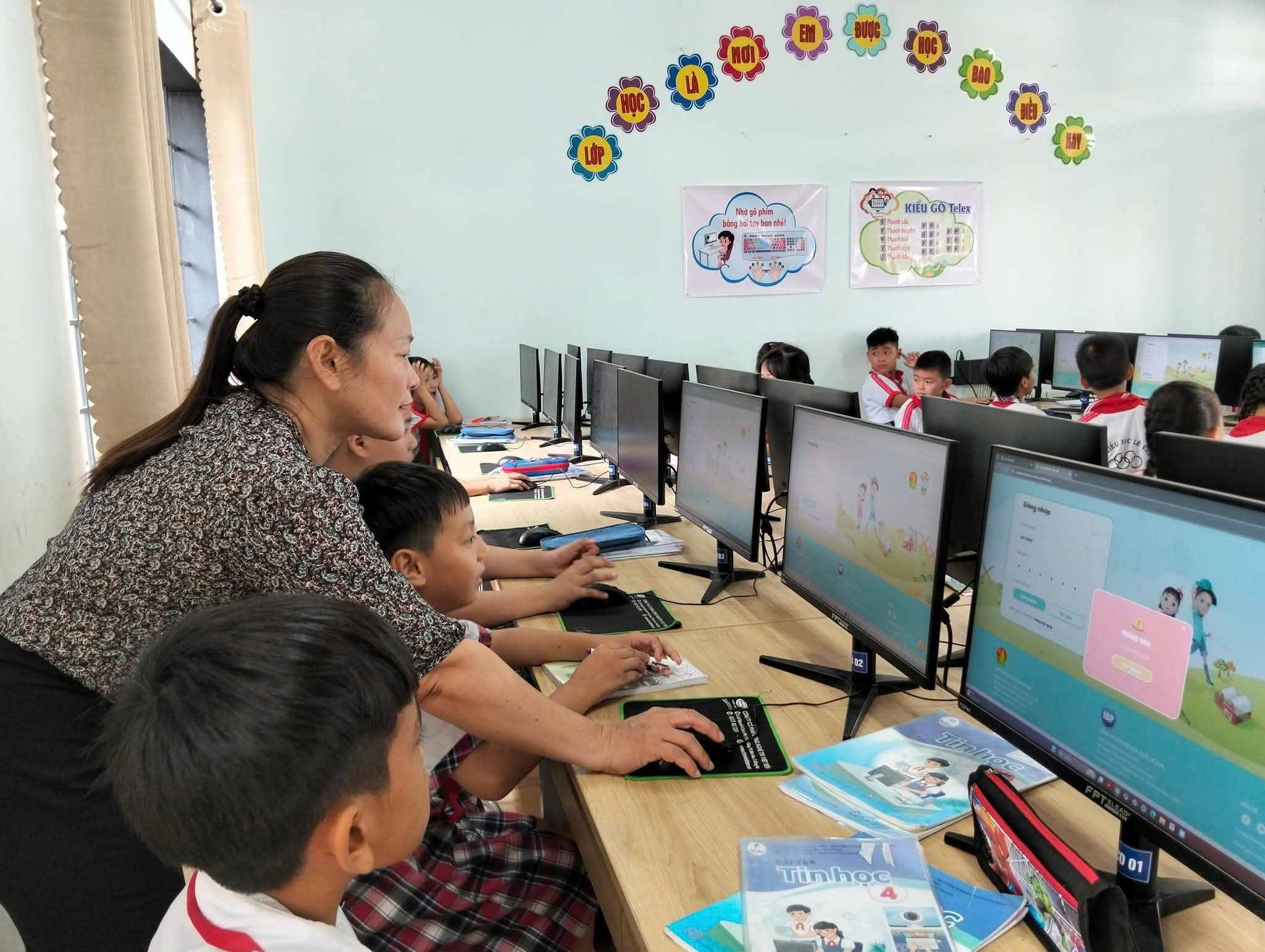 Hình 2: Hình ảnh các em học sinh trong giờ học Tin học.
