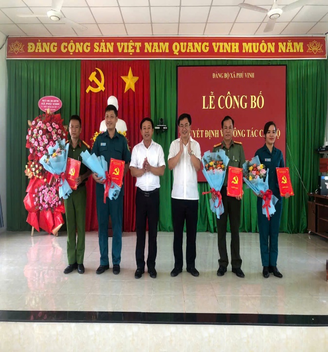 Tại hội nghị, Đại diện lãnh đạo Ban xây dựng Đảng đã công bố các quyết định của Ban Thường vụ Tỉnh ủy Đồng Nai về chỉ định nhân sự tham gia Ban chấp hành Đảng bộ xã Phú Vinh khóa I, nhiệm kỳ 2025-2030 đối với 4 đồng chí: Đồng chí Nguyễn Thanh Phương, Chỉ huy Trưởng Ban Chỉ huy Quân sự xã; Đồng chí Hồ Thị Hạnh, Phó Chỉ huy Trưởng Ban Chỉ huy Quân sự xã; Đồng chí Bùi Minh Vương, Trưởng Công an xã; Đồng chí Lê Hoàng Linh, Phó Trưởng Công an xã; Tham gia Ban Thường vụ Đảng bộ xã Phú Vinh khóa I, nhiệm kỳ 2025-2030 đối với 2 đồng chí: Đồng chí Nguyễn Thanh Phương, Chỉ huy Trưởng Ban Chỉ huy Quân sự xã; Đồng chí Bùi Minh Vương, Trưởng Công an xã.