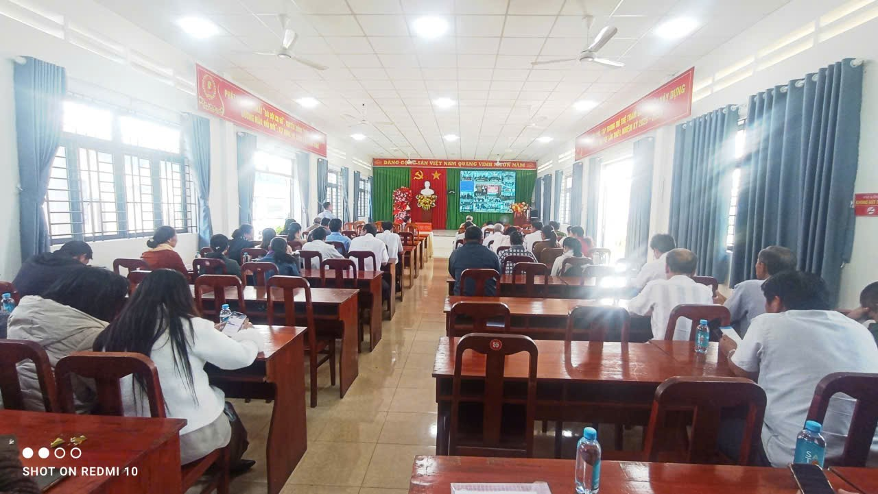 (Ảnh: Đ/c Huỳnh Văn Hồng – nguyên Ủy viên Ban Thường vụ Tỉnh ủy, nguyên Trưởng Ban Dân vận Tỉnh ủy (bên trái) và Đ/c Nguyễn Tiến Ngọc – Phó Bí thư Thường trực Đảng ủy xã (bên phải) cùng tham dự học tập Nghị quyết Đại hội đại biểu Đảng bộ tỉnh Đồng Nai lần thứ I, nhiệm kỳ 2025–2030 tại hội trường).