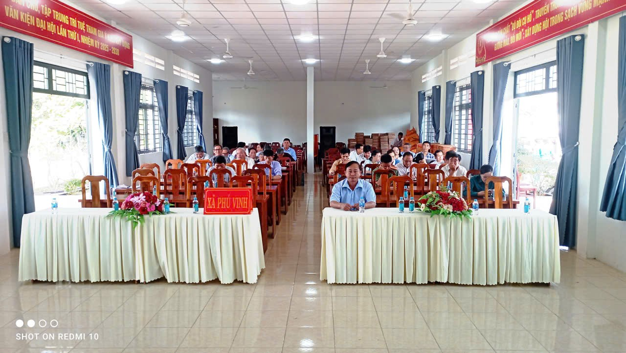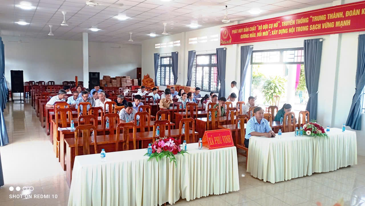 Thực hiện Công văn số 504-CV/BTGDVTU, ngày 15/01/2026 của Ban Tuyên giáo và Dân vận Tỉnh ủy về Tổ chức Hội nghị Báo cáo viên Trung ương tháng 01/2026 bằng hình thức trực tiếp kết hợp với trực tuyến toàn quốc. Sáng ngày 28/01/2026, Đảng ủy xã Phú Vinh đã tổ chức cho cán bộ, đảng viên tham dự Hội nghị Báo cáo viên Trung ương tháng 01/2026 bằng hình thức trực tiếp kết hợp trực tuyến toàn quốc tại điểm cầu Trung tâm Văn hóa thể thao - Học tập cộng đồng xã Phú Vinh.