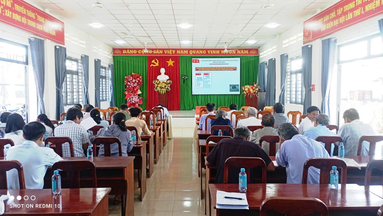 Tham dự Hội nghị tại điểm cầu xã có đại diện lãnh đạo HĐND, UBND, Ủy ban MTTQ Việt Nam xã; lãnh đạo Ban Xây dựng Đảng, Văn phòng HĐND - UBND xã, các phòng chuyên môn thuộc UBND xã, Công an, Quân sự xã; các đồng chí Báo cáo viên, Tuyên truyền viên cơ sở; cùng Bí thư chi bộ, Trưởng ấp, Trưởng Ban Công tác Mặt trận các ấp trên địa bàn xã.
